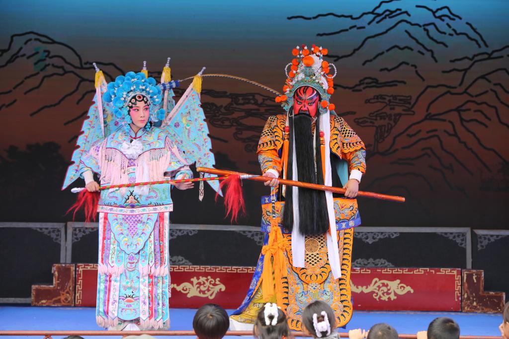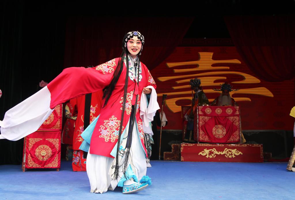 演員在甘肅省定西市體育公園演唱秦腔經(jīng)典傳統(tǒng)劇《周仁回府》(9月21日攝)。新華社發(fā)(王克賢攝)