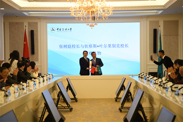 (左:中國傳媒大學校長張樹庭右:鐵穆爾別克·朱爾根諾夫哈薩克國立藝術學院院長欽格斯·葉爾果別克)
