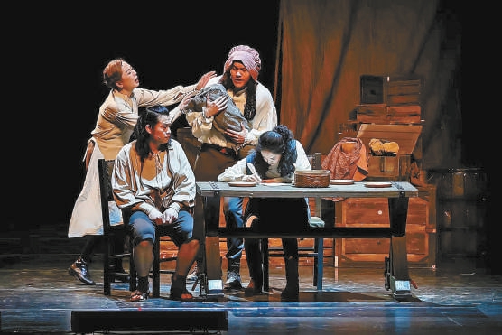 與16世紀“大航?!睍r代主題相扣,《威廉與我》的舞臺散發(fā)著復(fù)古氣息。巧妙多變的裝置設(shè)計,融合了古典與當代,既像一座微型劇場,又像一艘航行大船,還像一頂恢宏皇冠,也像一處囚籠刑場。劇中四位優(yōu)秀演員,以幽默詼諧、靈氣詩意、舉重若輕、跳進跳出的表演和身份轉(zhuǎn)換,分別扮演莎士比亞的童年、青年、中年、老年和其他30多個角色,在有限的時空中,用無限的想象力和表現(xiàn)力,將這位傳奇劇作家一生中的重要事件及作品創(chuàng)作情況串聯(lián)起來,演繹出他所處時代的風云變幻及其動蕩漂泊的復(fù)雜一生。
