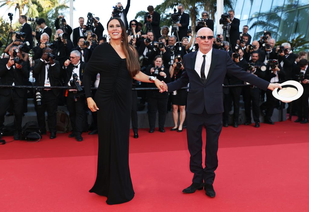 5月25日,在法國南部城市戛納舉行的第77屆戛納電影節(jié)上,演員卡拉·索菲亞·加斯孔(左)和法國導演雅克·奧迪亞爾抵達閉幕式紅毯。新華社記者 高靜 攝