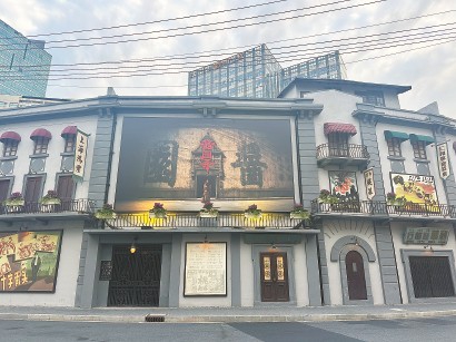 這兩天,乍浦路風(fēng)貌影視街入口處,當(dāng)年搭建“醬園”的地方又有了新變化。原先的《桃李劫》《馬路天使》的海報(bào)已撤下,掛起9米長(zhǎng)、5米寬的《醬園弄》首發(fā)巨幅海報(bào),電影拍攝時(shí)熱鬧打卡的城市記憶一時(shí)鮮活起來。勝利電影院門口的電子屏,滾動(dòng)播放著《醬園弄》幕后花絮,為影片上映做宣傳。