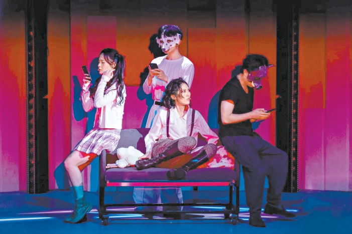 劇中人物的復(fù)雜性突破了非黑即白的框架:林嘉怡既是堅守藝術(shù)理想的創(chuàng)作者,也是被輿論反噬的受害者;李夢既是狂熱的追星少女,也是網(wǎng)暴的犧牲品;主編姜大海既是資本的傀儡,也是被時代裹挾的可憐蟲。四位優(yōu)秀演員每人都分飾多角,在作家、粉絲、主編、偵探等角色間自由切換,用聲線、肢體、表情的微妙變化完成身份轉(zhuǎn)換。這種角色輪換的設(shè)計,精準(zhǔn)揭示了網(wǎng)絡(luò)暴力“人人皆可成為加害者”的殘酷現(xiàn)實。正如劇中歌詞所唱:“這是一樁沒有兇手的謀殺案,但每個人都是兇手。”當(dāng)觀眾看到同一演員前一秒還在飾演施暴的鍵盤俠,下一秒?yún)s化身無助的受害者時,對暴力循環(huán)的認(rèn)知便從理性理解升華為情感共鳴。