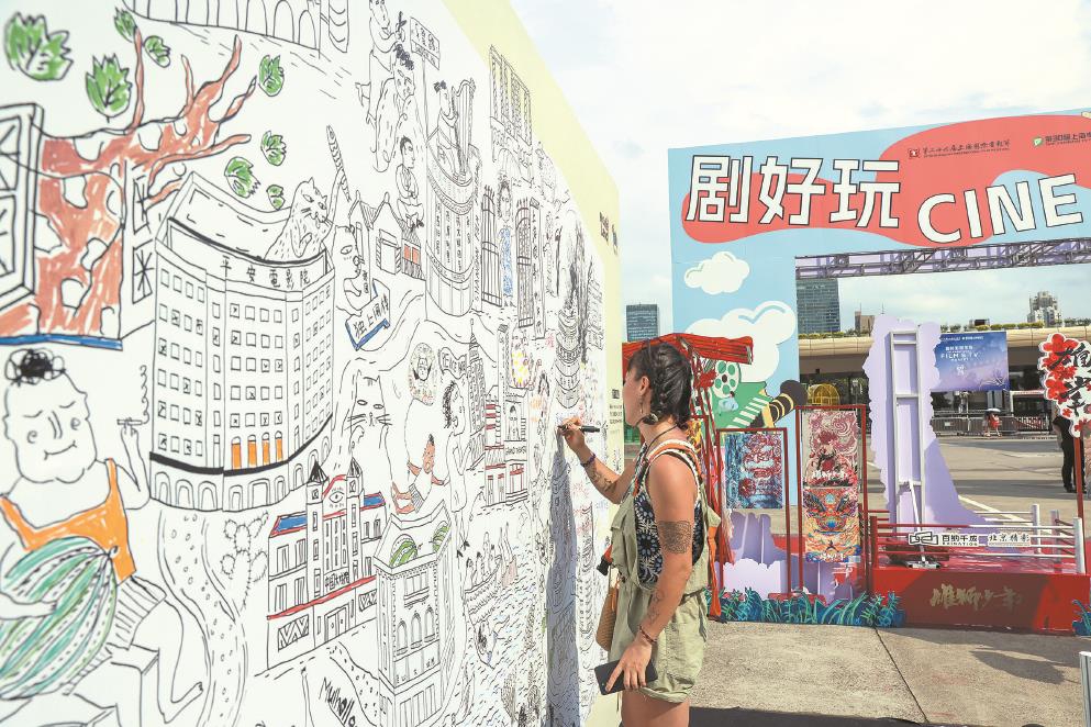 胡子拉碴的警員阿Sir、動(dòng)畫電影《馴龍高手》中的無牙仔、充滿懸念的“醬園弄現(xiàn)場”……在上海展覽中心,立有一塊由插畫師Rosá玫瑰與市民共創(chuàng)的“我的電影故事”畫板,一筆筆手繪中埋下很多城市彩蛋與弄堂故事,更有影迷在空白插畫區(qū)記錄下自己的“私影史”。畫板右上角有一處方方正正的電影院簡筆畫,連進(jìn)場路線都用火柴人標(biāo)注清楚,Movieland小程序工作人員韓語指著這處手繪告訴記者:“一位影迷過來,說‘怎么能沒有我們滬北電影院呢?我也要畫一個(gè)’,他就趴在畫板畫了快半小時(shí),昨天太陽那么大,背都曬紅了?!?/p>