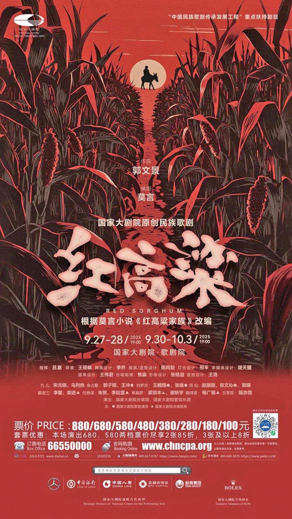 為大力弘揚英雄主義、愛國主義,在2025年紀(jì)念中國人民抗日戰(zhàn)爭暨世界反法西斯戰(zhàn)爭勝利80周年之際,國家大劇院隆重推出原創(chuàng)民族歌劇《紅高粱》,即將于9月27日至10月3日迎來世界首演。作為國家大劇院創(chuàng)作推出的第23部原創(chuàng)歌劇,該劇以文學(xué)經(jīng)典的全新舞臺呈現(xiàn),歌頌永恒熾熱的民族精神。