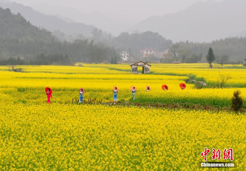 3月20日,江西省德興市??阪?zhèn)杜村婦女在田間花海“走秀”。當(dāng)日,江西德興市??阪?zhèn)杜村一批家庭婦女以千畝油菜花海為舞臺,展示自己的才藝形象,希望宣傳家鄉(xiāng)的自然生態(tài)與人文歷史,擴大旅游知名度和影響力。德興市海口鎮(zhèn)杜村交通便利,自然風(fēng)光優(yōu)美,村內(nèi)有歷史古跡和名木古樹。 胡敦煌 攝