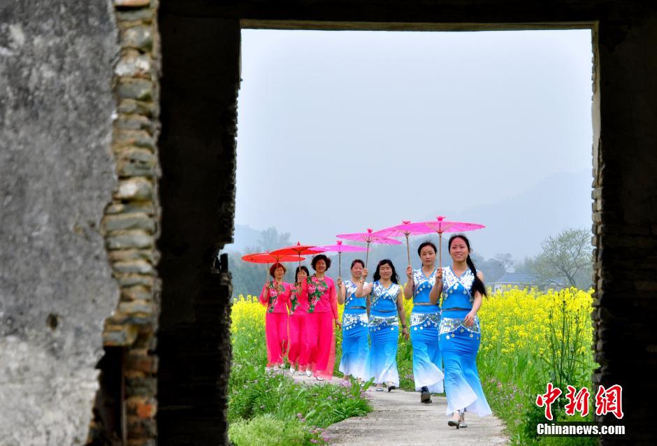 3月20日,江西省德興市??阪?zhèn)杜村婦女在田間花?!白咝恪?。當(dāng)日,江西德興市??阪?zhèn)杜村一批家庭婦女以千畝油菜花海為舞臺(tái),展示自己的才藝形象,希望宣傳家鄉(xiāng)的自然生態(tài)與人文歷史,擴(kuò)大旅游知名度和影響力。德興市海口鎮(zhèn)杜村交通便利,自然風(fēng)光優(yōu)美,村內(nèi)有歷史古跡和名木古樹(shù)。 胡敦煌 攝