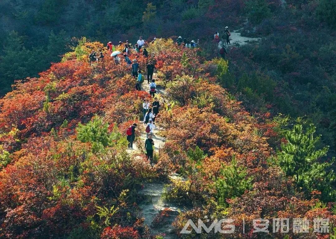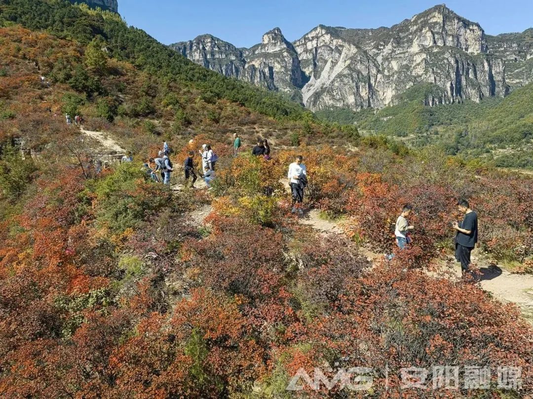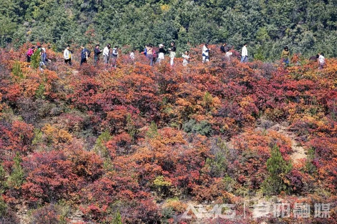 ??10月14日,河南安陽(yáng)林州石板巖鎮(zhèn)韓家洼村紅葉漫山,層林盡染,吸引著各地游客前來(lái)觀賞。據(jù)悉,韓家洼村地處林州市太行深山之中,每年秋季,這里的紅葉較其他地方紅得早。(圖:曲海慶/攝)