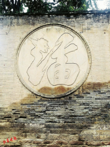 “龍鶴福”磚雕影壁位于張壁古堡賈家巷,是官紳張禮維故居的一部分,建于清朝乾隆年間,至今已有二百多年歷史。影壁上的這個“?!弊郑鸸P狂草灑脫俊逸,轉承行書剛勁有力,而落筆于“田”字時則急轉為楷端莊方正。福字集三種書法為一體,凌而不亂渾然天成。