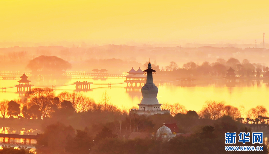 近日,在安徽省潁上縣八里河風(fēng)景區(qū),隨著紅日冉冉升起,晨曦映照在水面上,水光瀲滟,交相輝映,宛如油畫一般,盡顯光影之美。新華網(wǎng)發(fā)(徐紅梅 攝)