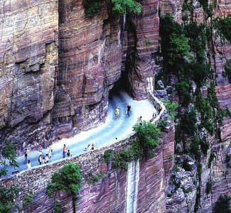 在太行山脈的晉豫交界帶,是我國第一階梯和第二階梯的分界線。在山脈的東西兩側(cè),地勢險要,垂直落差極大,形成了一座座筆直陡峭的懸崖絕壁,也構(gòu)造了大自然鬼斧神工的絕佳壯美奇景,卻也因此地形阻礙了大山居民的出行之路,千百年來的大山人民過著與世隔絕的生活。到了20世紀五六十年代,大山的居民們以愚公移山的精神,克服重重苦難,在懸崖峭壁上一錘一斧開出了一條條連接大山與外界的“掛壁公路”。