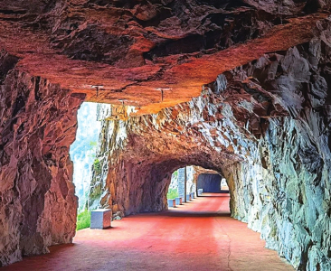 第二處的錫崖溝掛壁公路位于山西晉城市陵川縣境內(nèi),公路整體曲折蜿蜒,呈“之”字形,分三層攀上山頂,險峰云海,景色壯觀。而錫崖溝村則是四面環(huán)山、高山飛瀑,風(fēng)光絕佳。在公路修通前,由于交通閉塞,錫崖溝村的居民們世代過著與世隔絕,自給自足的生活。目前,錫崖溝村是王莽嶺景區(qū)的一個景點,在游覽完王莽嶺后可以乘坐游覽車穿過錫崖溝掛壁公路。但由于錫崖溝掛壁公路地勢十分險要,所以游覽車一般不在途中過多逗留。