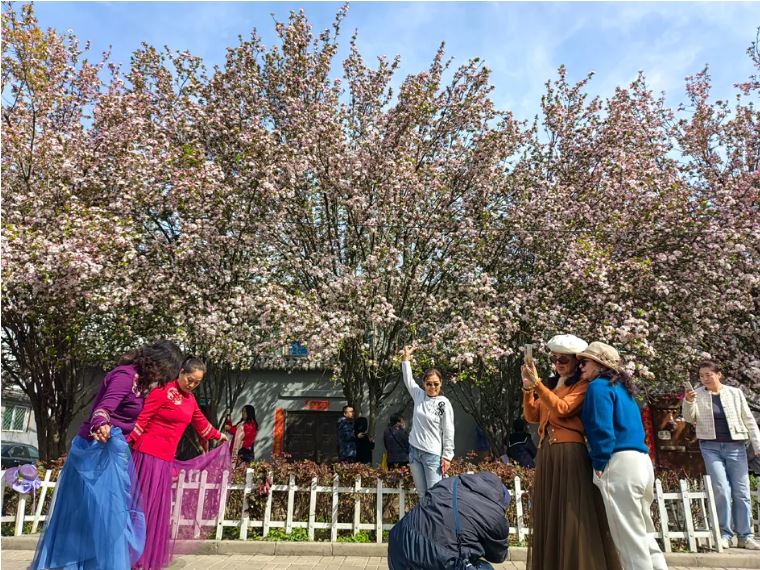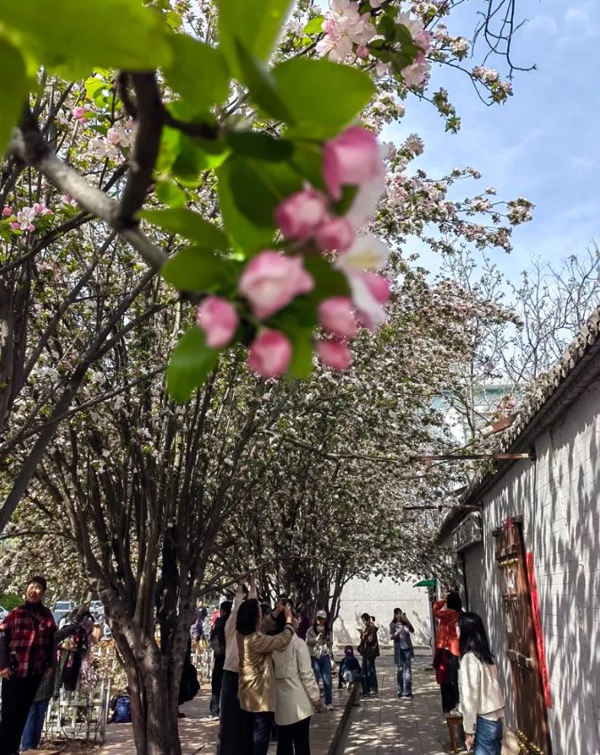 山西日報新媒體記者吳曉慶報道 清明時節(jié),一場綿綿春雨過后,太原杏林七條盛放的海棠讓人們邂逅了一場美不勝收的花海。粉白相間的海棠、富有年代感的木門與灰色的磚墻,優(yōu)雅中帶著古典,古典中又透著浪漫的氣息,清明小長假,許多市民身著艷麗的服裝,前來這條位于桃園三巷附近的“網紅”小巷打卡留念。