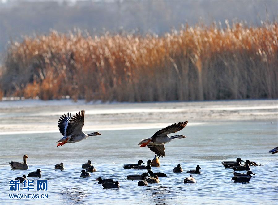 水鳥飛翔在拉魯濕地上空(1月7日攝)。入冬以來(lái),位于拉薩城邊的拉魯濕地國(guó)家級(jí)自然保護(hù)區(qū)候鳥增多,斑頭雁、赤麻鴨、野鴨等數(shù)十種候鳥在這里過(guò)冬。拉魯濕地國(guó)家級(jí)自然保護(hù)區(qū)海拔3600多米,總面積12.64平方公里,是中國(guó)海拔最高、面積最大的城市天然濕地,被譽(yù)為“拉薩之肺”。新華社記者 張汝鋒 攝