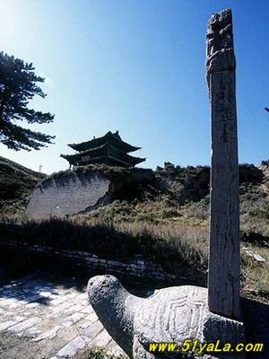 雄關(guān)雁門,居“天下九塞”之首(《呂氏春秋》)。從戰(zhàn)國時(shí)期的趙武靈王起,歷代都把此地看作戰(zhàn)略要地。趙置雁門郡,此后多以雁門為郡、道、縣建制戍守。雁門關(guān)之稱,始自唐初。因北方突厥崛起,屢有內(nèi)犯,唐駐軍于雁門山,于制高點(diǎn)鐵裹門設(shè)關(guān)城,戍卒防守?!短茣?middot;地理志》描述這里“東西山巖峭拔,中有路,盤旋崎嶇,絕頂置關(guān),謂立西徑關(guān),亦曰雁門關(guān)?!焙蠼?jīng)五代十國、宋、遼、金、元約四百余載。元朝設(shè)千戶所,關(guān)城被毀。明代吉安侯陸享于洪武七年(1374)自監(jiān)民工筑新關(guān)于舊關(guān)東北十里處的要道。南距代城縣四十余里,北鄰廣武古城二十一里,地勢(shì)更為險(xiǎn)要。明末清初的著名學(xué)者顧炎武曾親臨此地。他寫道“雁門重關(guān),山巒在演,霞飛云舉,兩山對(duì)峙,其形如門,而飛雁出于其間?!痹撽P(guān)城,周長(zhǎng)二里,墻高二丈,石座磚身,雉堞為齒,洞口三重,曰東門、西門、小北門。東門上筑樓臺(tái),曰雁樓,門額嵌石匾一方,橫書“天險(xiǎn)”(即“天險(xiǎn)”)。西門上筑有楊六郎廟,門額嵌石匾一方,橫書“地利”(即“地利”)。小北門未設(shè)頂樓,但磚石結(jié)構(gòu),格外雄固。門額石匾橫刻:“雁門關(guān)”三字。洞門兩側(cè)鑲嵌磚鐫楷書檢聯(lián):“三關(guān)沖要無雙地,丸塞尊崇第一關(guān)?!睎|門外北側(cè)建有“靖邊寺”祀戰(zhàn)國時(shí)代的軍事家趙將李牧。西門外右側(cè)建有關(guān)帝廟。關(guān)城正北置有駐軍營房,東南設(shè)有練兵教場(chǎng)。整個(gè)關(guān)城建筑,虎踞龍盤,雄偉壯觀。明清以后,關(guān)城雖屢有重建。但隨著我多民族統(tǒng)一國家疆域的逐步形成,內(nèi)長(zhǎng)城作為“內(nèi)邊”的作用已經(jīng)失去,所屬的雁門雄關(guān)也隨之荒廢?,F(xiàn)在的關(guān)城僅在東門、西門、小北門三個(gè)門洞和靖邊寺前的一對(duì)石獅,一副石旗桿,明鐫李牧碑石一塊,以及寺后的數(shù)株青松。