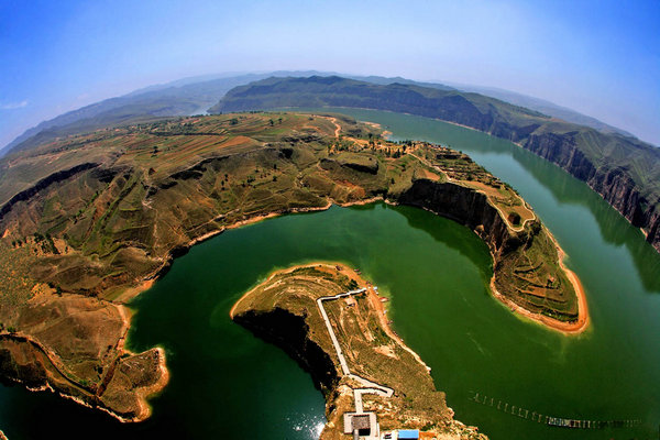 老牛灣是一座三面臨水的半島,在緊臨黃河的山崖上,有一座高達(dá)23米的望河樓,600年間雄踞高崖、俯視黃河,閱盡古今滄桑。如今隨著萬家寨水利樞紐工程勝利蓄水,滔滔黃河從萬家寨到老牛灣形成了一條長達(dá)70公里的蔚藍(lán)飄帶,長城到老牛灣之后,繼續(xù)順河南下,經(jīng)萬家寨、關(guān)河口至河曲樓子營而止,逶迤相伴達(dá)百余里。
