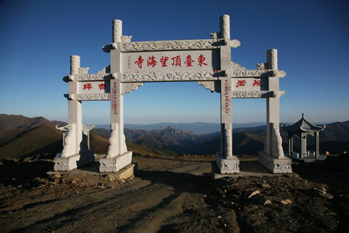 望海峰的盛景在于東觀日出。由于東面再無(wú)大山阻擋,所以人的目力可東眺非常遙遠(yuǎn)的地方。峰頂曾建有望海樓,專(zhuān)門(mén)為觀景而建??上昃靡褮?,1985年重建,為望海寺,內(nèi)供聰明文殊。有史籍記載日出之壯麗景象:“每當(dāng)蒸云寢壑之隙,爽氣澄秋之際,于日出扶桑之時(shí),可望紅日十倍于車(chē)輪,紅輪之下,隱隱水光閃爍,若波若鏡,瑰麗非凡。1977年8月,趙樸初先生登東臺(tái)觀日出后乘興填詞《五臺(tái)雜詠·調(diào)寄憶江南》,形象描繪了東臺(tái)日出之勝景: