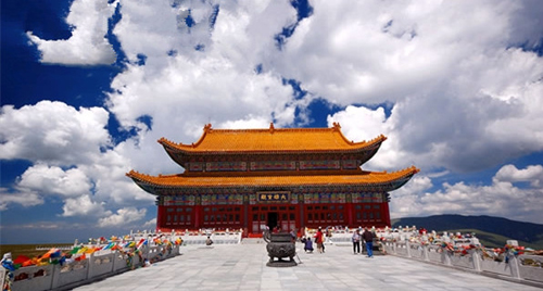 夏日的中臺頂青綠如黛,碧如翡翠,猶似一堆巨大的祖母綠。游人走累了,躺在細若絲絨、猶若天然地毯的青草上,面向天空,感覺天藍藍的,云柔柔的,風(fēng)輕輕的,特別清爽。飄動著的白云,千變?nèi)f化地追蹤著人們的足跡,還癡癡地纏繞在身前身后,讓人如置身仙境,美妙異常。