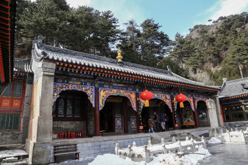 現(xiàn)僅存有四座大殿,分別是天王殿、大雄寶殿、觀音殿和關公殿,其中觀音殿又稱文殊殿,殿內(nèi)供奉有五尊菩薩,兩側是十八羅漢。寺后有一座小院,院內(nèi)有乾隆五十一年建造的十五世章嘉活佛墓塔。墓塔八面雕有精細的人物圖案。章嘉活佛是黃教中一個歷代沿襲的職位,其地位僅次于達賴、班禪活佛??滴趸实圩鹫录位罘馂椤按髧鴰煛保屍浣y(tǒng)管內(nèi)蒙五十旗。第十九世章嘉活佛、即末世活佛被袁世凱委任為北京、西寧、五臺山黃教的首領,后來還擔任了國大代表。這個末世活佛在五臺山擁有極大權力,因鎮(zhèn)海寺是他的行署,所以鎮(zhèn)海寺的規(guī)模也日漸龐大。