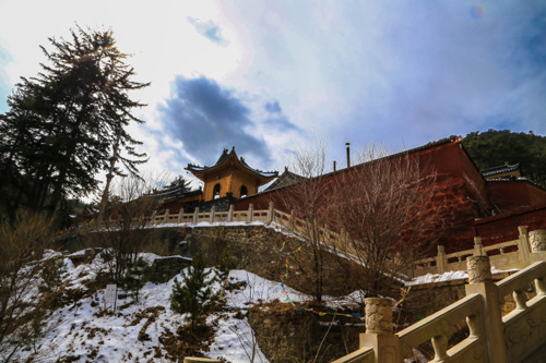 鎮(zhèn)海寺位于山西省忻州市五臺縣臺懷鎮(zhèn)南清水河西側,距臺懷鎮(zhèn)5公里。坐落在“二龍戲珠”的風水寶地,左右兩側環(huán)繞的山峰,猶如兩條飛龍落下河谷,拱背彎腰,騰挪圍抱;寺院建筑在兩山合抱的一個石山嘴上,宛若一顆二龍嬉戲的寶珠。山豁口有蒼老挺拔的大松樹,走在松樹林間的蹊徑,再聽颯颯的松風,給人一促靜寞幽深的感覺。入寺四望,南側的山峰,長滿密密麻麻的杉樹和楊樹,北側的山巔上,千年古松出于(山免)巖石之中。這里是五臺山的一處風景區(qū),濃蔭蒼翠的古松掩映山寺,在五臺寺廟區(qū)還是少見的。