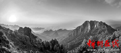 站在峰巔,舉目眺望,但見在初升的陽(yáng)光照耀下,經(jīng)過大雨洗滌的綠色山峰,呈現(xiàn)出一種奇異的火紅色彩,別有一番神韻。環(huán)顧四周,峰巒重疊,溝壑縱橫,石猴山、臥虎山等30多座海拔2000多米以上的兄弟峰巒,簇?fù)碇盖偷奶J芽諸山,其勢(shì)綿延不絕,氣象磅礴壯觀。云霧在山峰飄蕩,如煙似雨,彌漫四合。尖峭高聳、怪石嶙峋的蘆芽諸山,突出于翻伏騰涌的云霧之上,仿佛蔥蘢茁壯的蘆芽破石而出,生機(jī)勃勃,鮮嫩欲滴,翠色宜人。