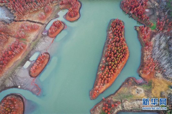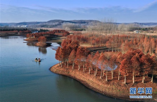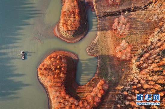 初冬之際,在江蘇盱眙天泉湖畔,連片的紅杉呈現(xiàn)鮮艷的色彩,構(gòu)成獨(dú)特的景觀畫卷。天泉湖在生態(tài)建設(shè)時(shí)種植紅杉,目前已成為有名的生態(tài)旅游目的地。