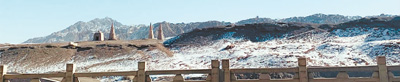 敦煌莫高窟前臨宕泉河,南西北三面呈環(huán)形,似懷抱,東面三危山高聳。晚餐后,記者走在宕泉河岸邊公路上,舉目遠(yuǎn)眺,潔白的大雪讓莫高窟純凈晶瑩、透亮明媚,也讓人心境澄澈,如段文杰所言:一畫入眼中,萬事離心頭。(董洪亮)