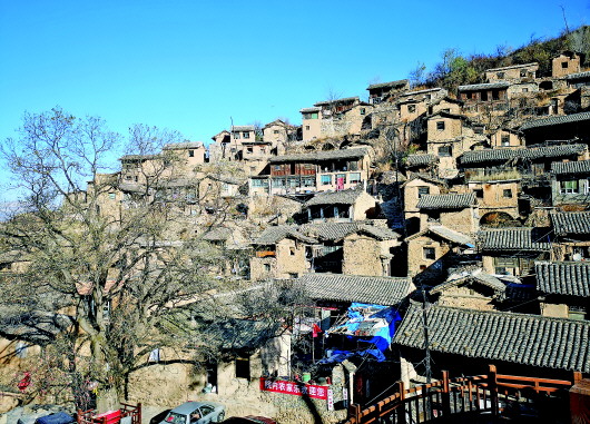 在太行山里一塊凸起的大山石上,村民們建起了鱗次櫛比、不同于當?shù)仫L格的50余座院落,他們?nèi)粘龆?、日落而息,歷經(jīng)千年。