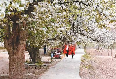 這三處地方的河畔灘地上,有先祖留下的幾千棵老梨樹。其中南長灘的梨樹最為古老,當?shù)乩先苏f有400多年的歷史。生活在南長灘的百姓拓姓居多,有人據(jù)此考證認為這里的人們是西夏黨項拓跋氏的后裔。
