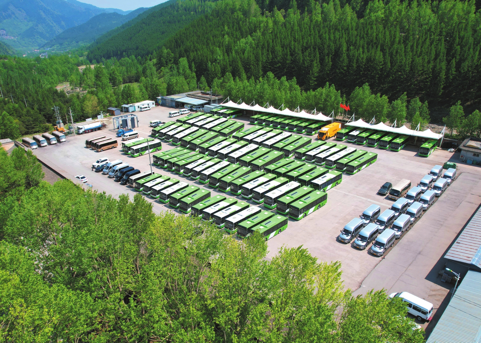 在晉旅運通的業(yè)務版圖上,同樣亮眼的還有綠色低碳的底色。140輛新能源公交車與近百輛燃油巴士共同編織起17條公交線路覆蓋核心景點與村鎮(zhèn)。300輛專業(yè)朝臺車,是叩拜五方文殊的信眾與向往臺頂風光的游客最堅實的依靠。50輛新能源出租車,則如細密的觸角深入護銀溝、普安寺等偏僻村落與寺院,解決了當?shù)鼐用?、僧尼及游客“最后一公里”的出行難題。其綠色足跡,無聲守護著山林的清靜。同時,晉旅運通從票務代理(航空、鐵路、景區(qū)門票、酒店預訂)到94輛公務租賃車輛,再到33輛旅游包車提供團隊出行及接送站服務,構建了覆蓋全域、貫穿旅程始終的立體交通服務生態(tài)。