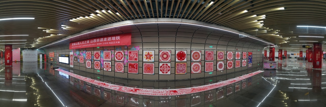 國家級非物質(zhì)文化遺產(chǎn)代表性項目太原剪紙在太原地鐵2號線長風(fēng)街站展示。井宇豪 攝