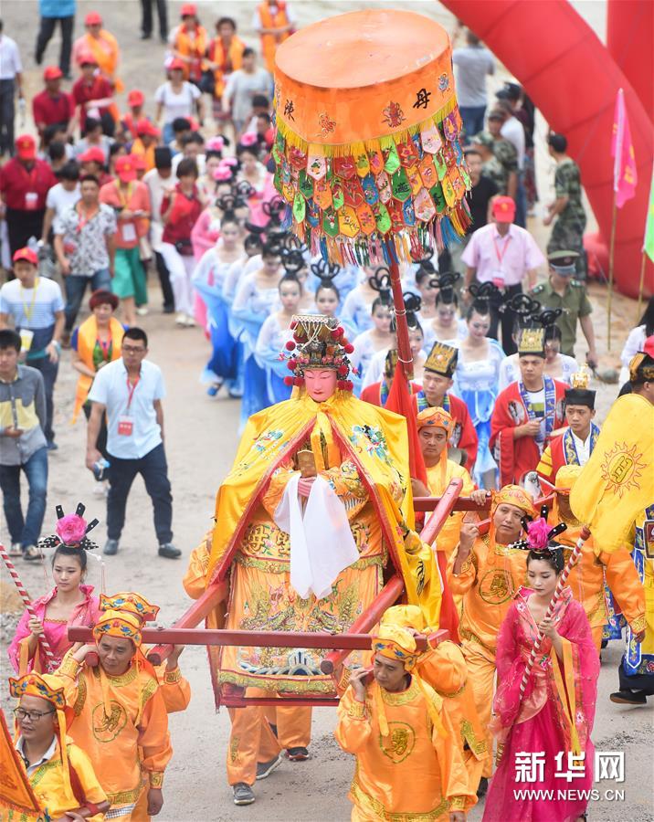6月13日,福建省寧德市古田縣舉行臨水夫人祭祀大典,為海峽論壇的重要組成部分——陳靖姑文化節(jié)拉開(kāi)序幕。本屆文化節(jié)以“臨水緣·兩岸情”為主題,港澳臺(tái)及內(nèi)地近千名信眾共同參加。作為國(guó)家級(jí)非物質(zhì)文化遺產(chǎn)“陳靖姑信俗文化”的發(fā)祥地,福建省古田縣充分以陳靖姑信俗文化為紐帶,通過(guò)不斷加深對(duì)外文化交流與合作,對(duì)推動(dòng)兩岸關(guān)系和平發(fā)展、我國(guó)與海絲沿線國(guó)家民間交流起到了積極作用。陳靖姑被譽(yù)為“婦女兒童保護(hù)神”,在世界各地信眾已逾億人。新華社記者 宋為偉 攝