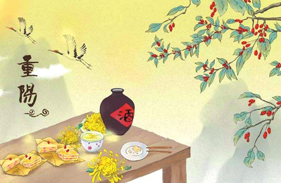 東晉詩人陶淵明在《九日閑居》一詩序文中曰:“余閑居,愛重九之名。秋菊盈園,而持醪靡由,空服九華,寄懷于言?!睂O思邈的《千金方月令》也稱:“重陽日,必以看酒登高遠眺,為時宴之游賞,以暢秋志。酒必采茱萸、菊以泛之,即醉而歸。”唐代王維的詩句膾炙人口:“遙知兄弟登高處,遍插茱萸少一人。”杜牧《九日齊山登高》詩云:“塵世難逢開口笑,菊花須插滿頭歸。”清代,北京重陽節(jié)的習俗是把菊花枝葉貼在門窗上,“解除兇穢,以招吉祥”。