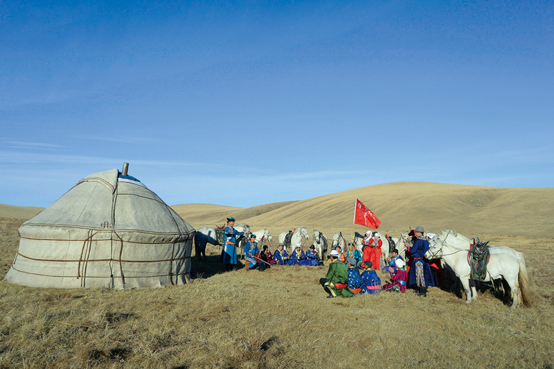 2017年,內(nèi)蒙古自治區(qū)蘇尼特右旗烏蘭牧騎隊員們聯(lián)名給習近平總書記寫信,表達了為繁榮發(fā)展社會主義文藝事業(yè)作貢獻的決心。2017年11月21日,習近平總書記給他們回信,勉勵他們扎根生活沃土,服務牧民群眾,推動文藝創(chuàng)新,努力創(chuàng)作更多接地氣、傳得開、留得下的優(yōu)秀作品,永遠做草原上的“紅色文藝輕騎兵”。圖為2018年11月20日,烏蘭牧騎隊員們又一次奔赴牧區(qū)為牧民們表演節(jié)目。 新華社發(fā) 東哈達/攝