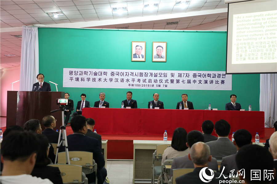 朝鮮首家漢語(yǔ)考試中心在平壤科技大學(xué)舉行揭牌儀式。(人民網(wǎng)記者 莽九晨攝)