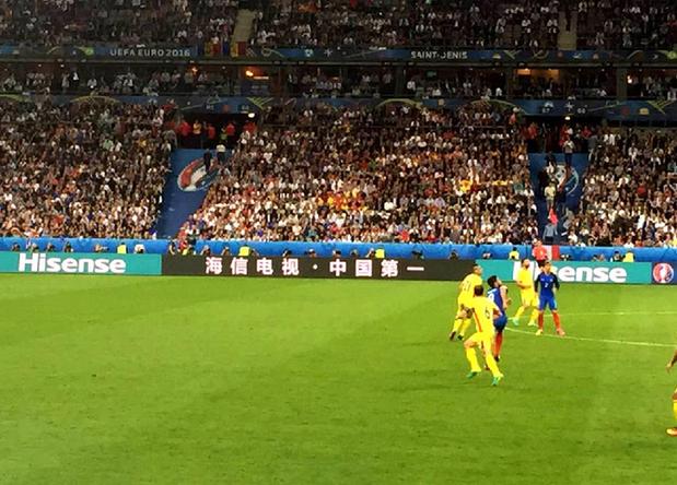 “海信電視,中國第一”!2016年6月10日,法國巴黎圣丹尼斯球場,隨著歐洲杯揭幕戰(zhàn)打響,中國品牌海信的廣告出現在全球球迷面前。這是歐洲杯56年來第一次迎來中國贊助商,海信的廣告也在未來1個月內出現在全部51場歐洲杯比賽中。
