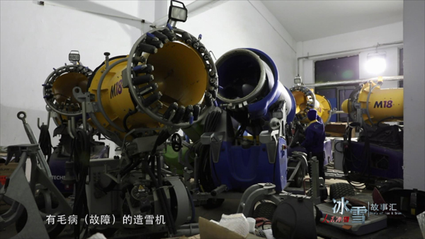 這是造雪機的維修庫,每年用完的造雪機,哪有毛病(故障),我們會自己進(jìn)行檢修。我們把這些有毛?。ü收希┑脑煅C,進(jìn)行修理,使它們來年為我們雪場更好地工作,這也是我的工作樂趣。