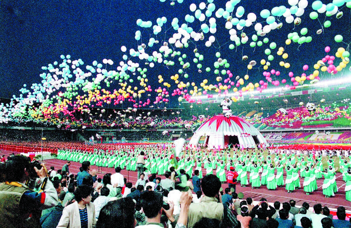 1990年9月22日至10月7日,第十一屆亞運(yùn)會(huì)在北京舉行。這是中國(guó)首次舉辦國(guó)際綜合性運(yùn)動(dòng)會(huì)。圖為開(kāi)幕式現(xiàn)場(chǎng)。 新華社發(fā)