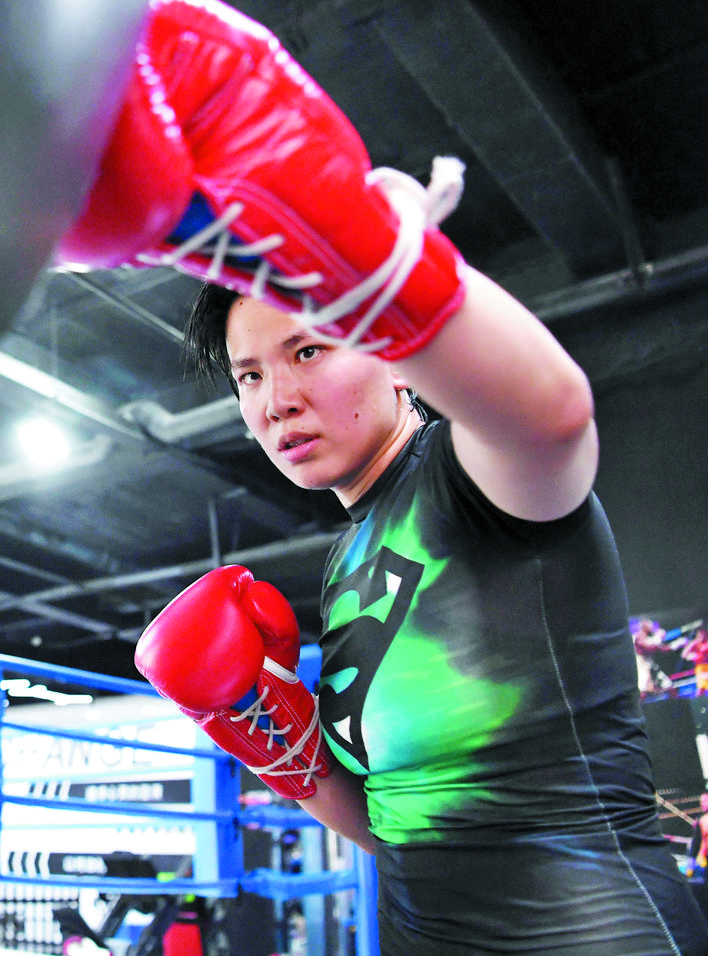 “面對的全是男拳手,剛開始的時候經(jīng)常鼻青臉腫?!彪m然在力量、體能和抗擊打能力方面比較吃虧,但是要強(qiáng)的性格讓薛金玉選擇了堅持,“喜歡容易堅持難,我不能放棄,不能被男拳手小瞧。”