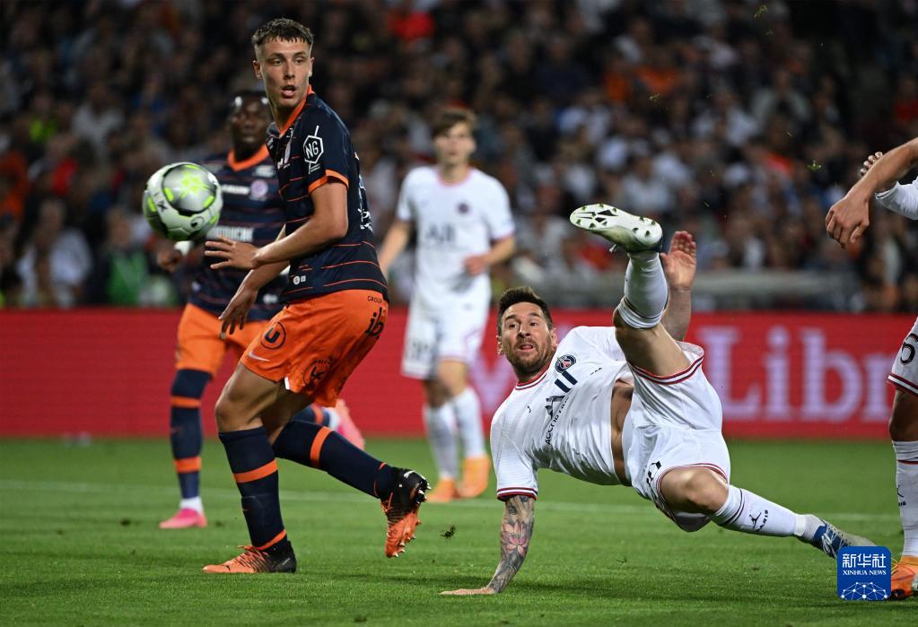 5月14日,巴黎圣日耳曼隊(duì)球員梅西(右)在2021-2022賽季法國足球甲級聯(lián)賽第37輪比賽中。新華社/法新