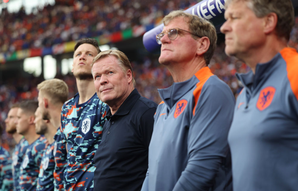 6月21日,荷蘭隊(duì)主教練羅納德·科曼(中)在比賽前。當(dāng)日,在德國(guó)萊比錫進(jìn)行的2024歐洲足球錦標(biāo)賽D組第二輪比賽中,法國(guó)隊(duì)0比0戰(zhàn)平荷蘭隊(duì)。新華社記者 白雪飛 攝