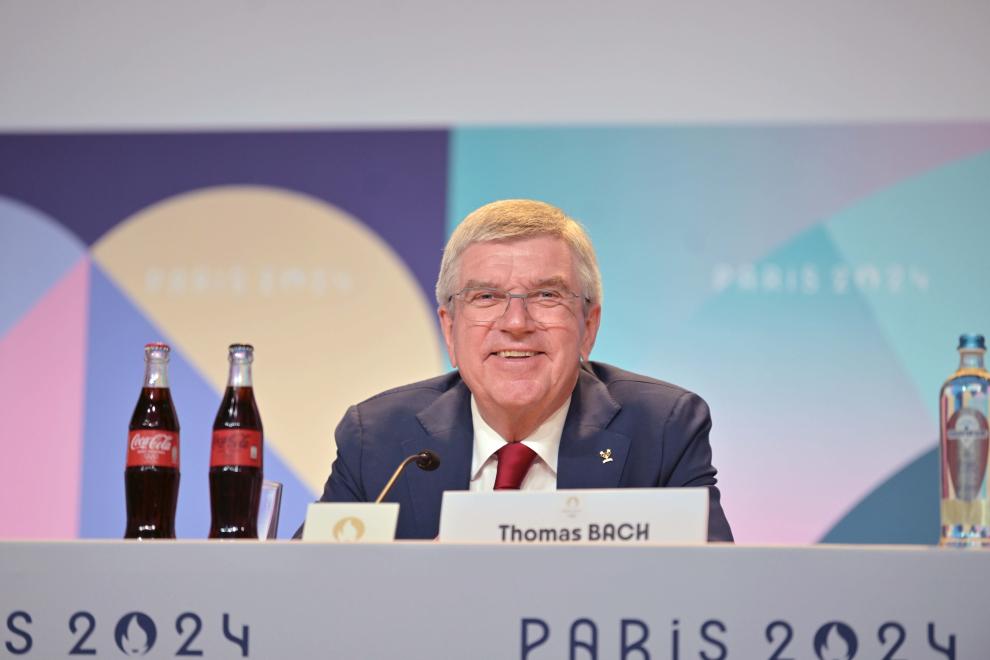 7月23日,國際奧委會主席巴赫在新聞發(fā)布會上。當(dāng)日,第142屆國際奧林匹克委員會全會首日新聞發(fā)布會在法國巴黎舉行。新華社記者 侯昭康 攝
