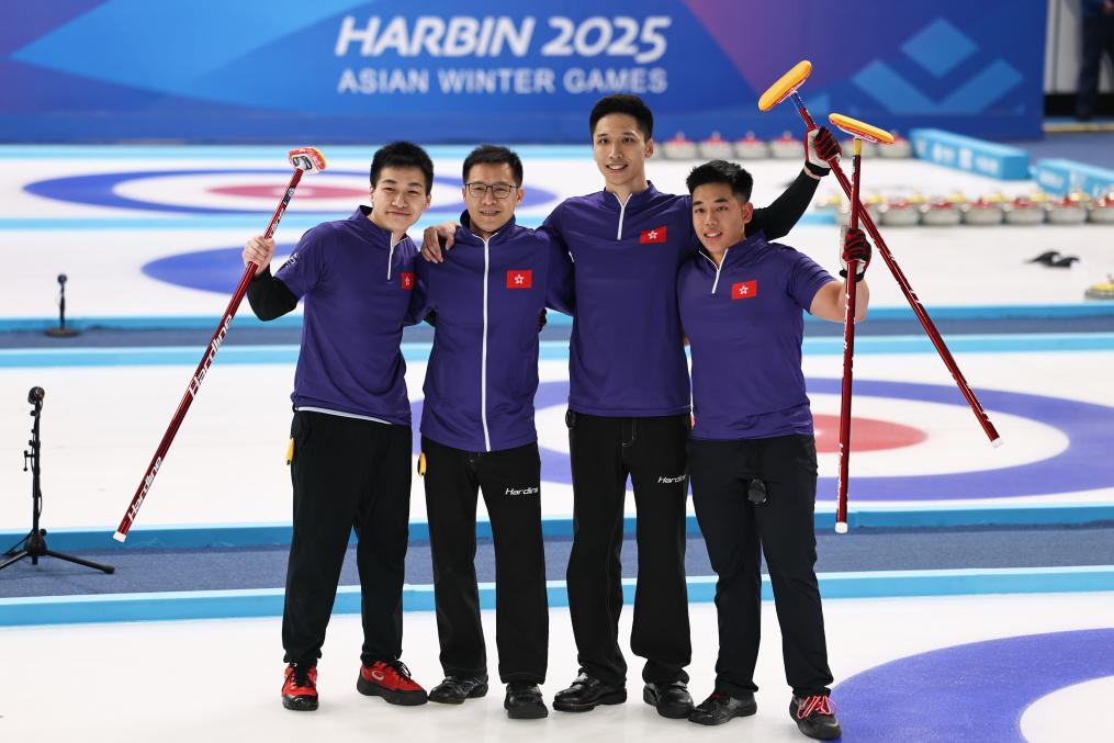 2月10日,中國香港隊(duì)選手鐘卓熙、張卓華、甄浩天、鄭政楠(左至右)在比賽后。新華社記者 鄭煥松 攝