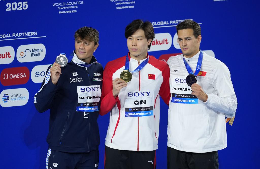 新華社新加坡7月28日電(記者夏亮、周欣)58秒23!金牌!獲勝后的覃海洋手持五星紅旗,不斷向現(xiàn)場觀眾致意。