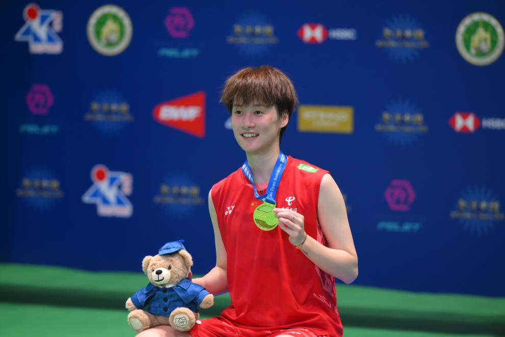 8月3日,冠軍陳雨菲在頒獎儀式上。新華社發(fā)(張金加攝)