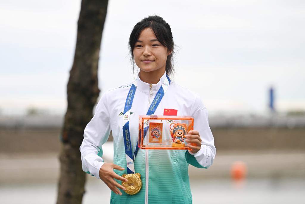 8月10日,中國(guó)選手徐露在頒獎(jiǎng)儀式上。新華社記者 陳振海 攝