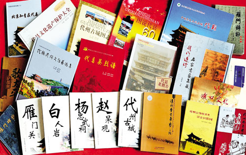 由程培甫、馮祥主編的《雁門碑抄》收錄了唐代以來鐫刻在代縣各地的古碑碑文98篇,詔、敕、封誥19篇,從不同的側面反映和記錄了代縣悠久的歷史和博大的文化內涵,是挖掘、整理、弘揚雁門文化極其珍貴的歷史資料。由王文藻主編的《雁門詩抄》,分“人物篇”和“形勝篇”兩本?!叭宋锲眳R集了有詩詠代的代州人,或在代地作過官,或因事涉足過代地的83位歷史人物和詠贊他們的230首詩詞,意在讓今人了解古人的業(yè)績政聲,學習古人的品格情操?!靶蝿倨眲t收集了歷代仕宦、詩人、騷客、雅士游覽代州時寫下的300多首詠贊代州壯美山河、名樓勝跡的古代詩詞,意在讓今人更好地挖掘、了解、弘揚博大精深的雁門文化,推動代縣旅游事業(yè)的發(fā)展,促進縣域經濟的振興。2008年由山西人民出版社出版的《代縣老照片》,收集了代縣從清朝末年到上世紀50年代拍攝的360多幅珍貴的歷史照片,分為古城遺跡、雁門雄關、教育篇章、代商風采、社會百態(tài)、名人佚事、革命史詩等七個篇章,結為一集。翻閱這些泛黃的老照片,讀者可以欣賞文化名城宏偉壯觀的古老建筑,瞻仰歷史名人的風姿俊采,領略代州驕子的雄才大略,感受有識之士的宏圖大志,體會莘莘學子的凌云壯志……透過這些老照片,我們既能追尋歷史,更可展望未來。2009年出版的《圖說代縣60年》,以編年體的形式,按照時間順序,選取每年在代縣大地上發(fā)生的重大事件、重要人物,或是能真實反映當時當地具有時代特色、風土人情的歷史照片780多幅,配以簡明扼要的文字說明,形象生動地再現了新中國成立60年來代縣發(fā)展變化的歷史進程,是新中國60年發(fā)展變化的一個縮影。它所包含的信息和所起到的作用會超越時空,成為后人認識歷史演變的生動教材。同年出版的《代縣古城圖志》則以圖文并茂的形式,向讀者介紹了代州古城的歷史沿革、代州古城的城垣、街衢、商貿、衙廨、教育、寺廟、風俗風物、歷史人物等內容,展示了古代州悠久的歷史和深厚的文化底蘊,為人們提供了一個了解代州古城的窗口。