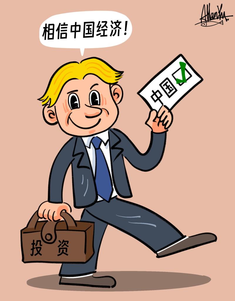 中國(guó)市場(chǎng)不是“可選項(xiàng)”而是“必選項(xiàng)”。外資加碼在華投資,外商深耕中國(guó)市場(chǎng),國(guó)際機(jī)構(gòu)接連上調(diào)中國(guó)經(jīng)濟(jì)增長(zhǎng)預(yù)期,共同對(duì)中國(guó)經(jīng)濟(jì)投下“信任票”。對(duì)于理性的觀察家來(lái)說(shuō),與唱衰中國(guó)的“唱將”們靠嘴鼓噪相比,這些用腳投下的“信任票”更具說(shuō)服力。(漫畫(huà):于艾岑;記者:高文成)
