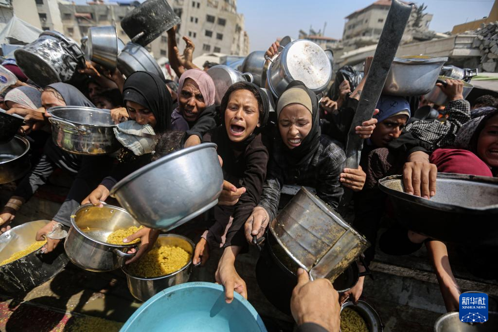 8月10日,民眾在加沙城領(lǐng)取免費食物。新華社發(fā)(里澤克·阿卜杜勒賈瓦德攝)
