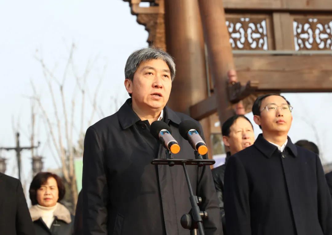 本報(bào)訊 (記者任逢春)12月9日,忻州古城西園竣工開園儀式在西園南門舉行。市委書記、市長(zhǎng)朱曉東宣布忻州古城西園竣工開園并為西園揭牌。市委副書記、政法委書記郭奔勝主持儀式。市人大常委會(huì)主任王珍,市政協(xié)主席王建廷,市領(lǐng)導(dǎo)張文偉、崔向松、郭寶厚、袁小波,市政府秘書長(zhǎng)張艮生出席儀式。市政府一級(jí)巡視員武憲堂介紹古城西園工程建設(shè)概況。忻州城區(qū)基礎(chǔ)設(shè)施和市政重點(diǎn)工程建設(shè)總指揮部成員單位負(fù)責(zé)人,忻州古城項(xiàng)目部、設(shè)計(jì)單位、施工單位、監(jiān)理單位代表,城南片區(qū)分指揮部及鄉(xiāng)村干部群眾,秀容文旅及古城運(yùn)營(yíng)公司、西園施工隊(duì)等代表共同見證開園。