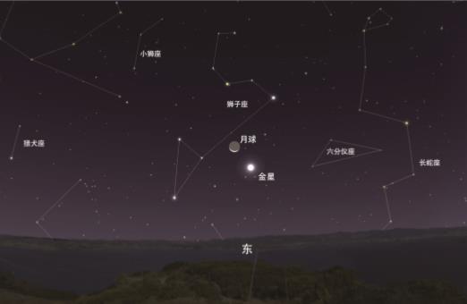10月14日是農(nóng)歷的八月廿八,月亮以小月牙的形態(tài)與金星相合,周?chē)歇{子座的亮星相伴。臨近日出時(shí)天空還會(huì)被曙光染上橙黃色,暗星隱去,月牙、金星和獅子座的亮星交相輝映,觀賞性還是很不錯(cuò)的。由于當(dāng)天月亮和金星都是在凌晨升起,所以大家需要起早欣賞這個(gè)天象。